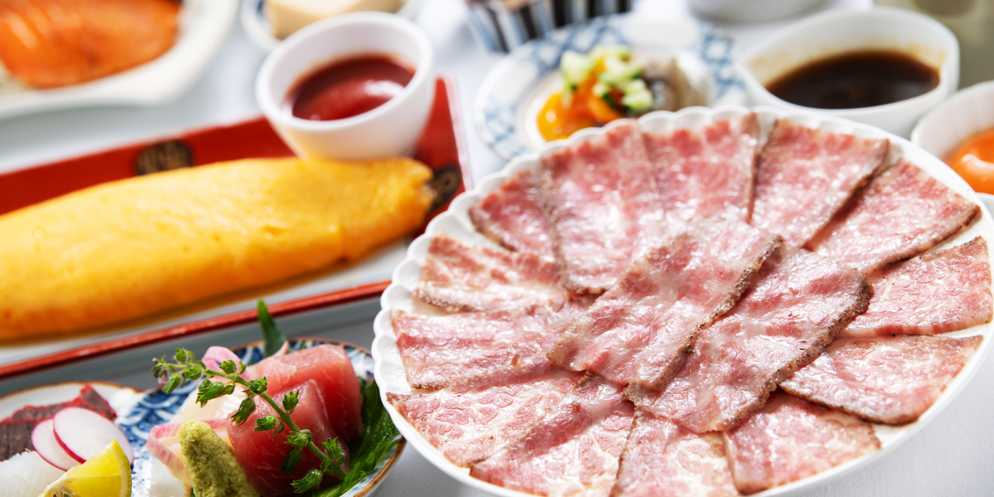 長崎の新鮮な食材と伝統が織りなす、至福の朝食体験。厳選された地元の魚介や野菜、上質な長崎和牛のローストビーフなど、バラエティ豊かな和洋の味わいを一つの膳に。落ち着いた空間で、旅の朝に相応しい贅沢なひとときをお過ごしください。